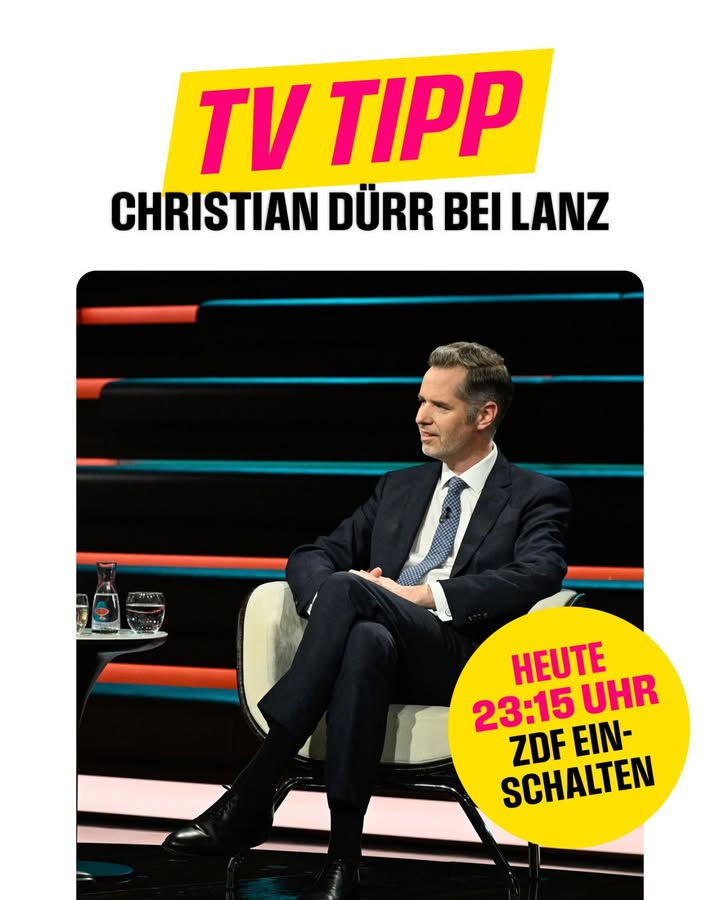 Heute Abend einschalten: Christian Dürr zu Gast bei Markus Lanz! 23:15 Uhr im ZDF. 📺