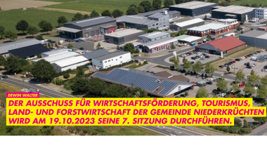 Der Ausschuss für Wirtschaftsförderung, Tourismus, Land- und Forstwirtschaft der Gemeinde Niederkrüchten wird am 19.10.23 seine 7. Sitzung durchführen. Öffentliche Niederschrift beigefügt.