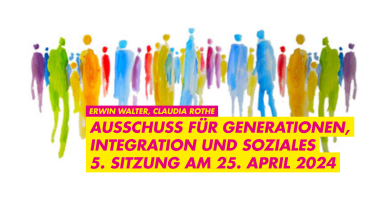 10.05.2024 Ausschuss für Generationen, Integration und Soziales am 25. April 2024 Mit Tagesordnung und Niederschrift öffentlicher Teil. Mehr dazu